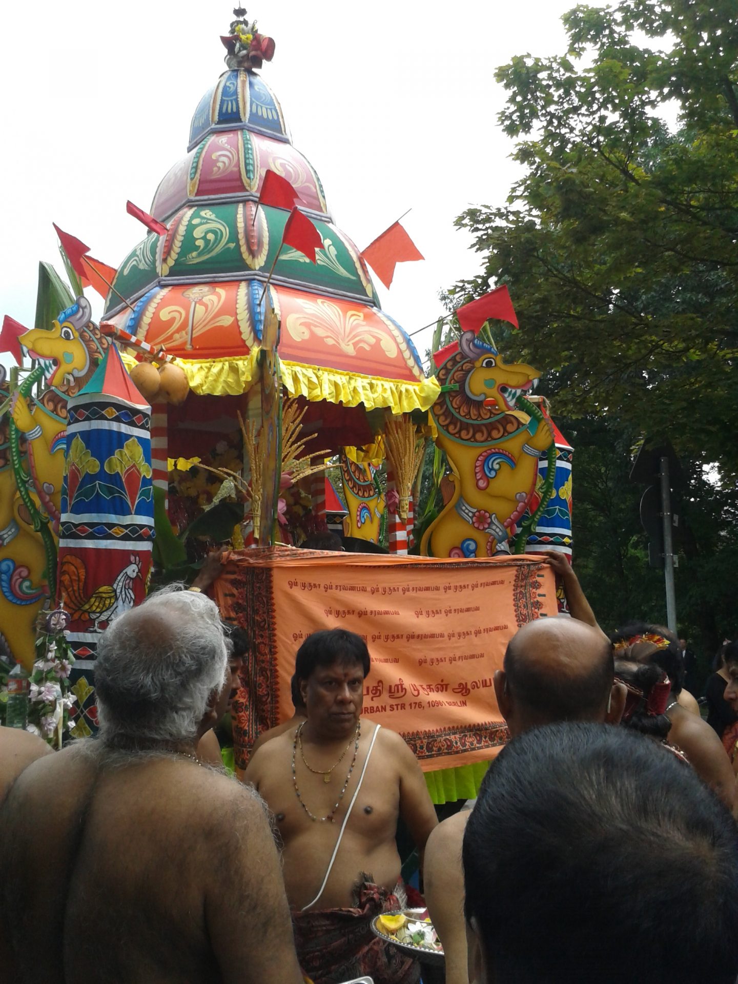Auch in Berlin wird dieses Fest jedes Jahr von der tamilischen Hindugemeinde Sri Lankas begangen. Und seit die Gemeinde ihren neuen Tempel in der Riesestraße in Britz hat, können in diesem Stadtteil Besucher nun jedes Jahr im Spätsommer an der großen Wagenprozession des Gottes teilnehmen und mittels leckerer indischer Kostproben, die vorher dem Gott geweiht wurden, dessen Segen empfangen. Den Höhepunkt der Feierlichkeiten bildet nämlich der 24. Tag, an welchem das Ter Tiruvila, das Wagenfest stattfindet. Hier wird die Festtagsstatue Murugans in besonderer Weise geschmückt und mit Ritualen geweiht. Anschließend wird die Bronzefigur auf einer thronähnlichen Sänfte aus dem Tempel herausgetragen und unter jubelnden Zurufen der Gläubigen auf einen buntgeschmückten Götterwagen gesetzt.