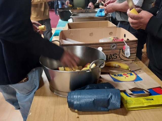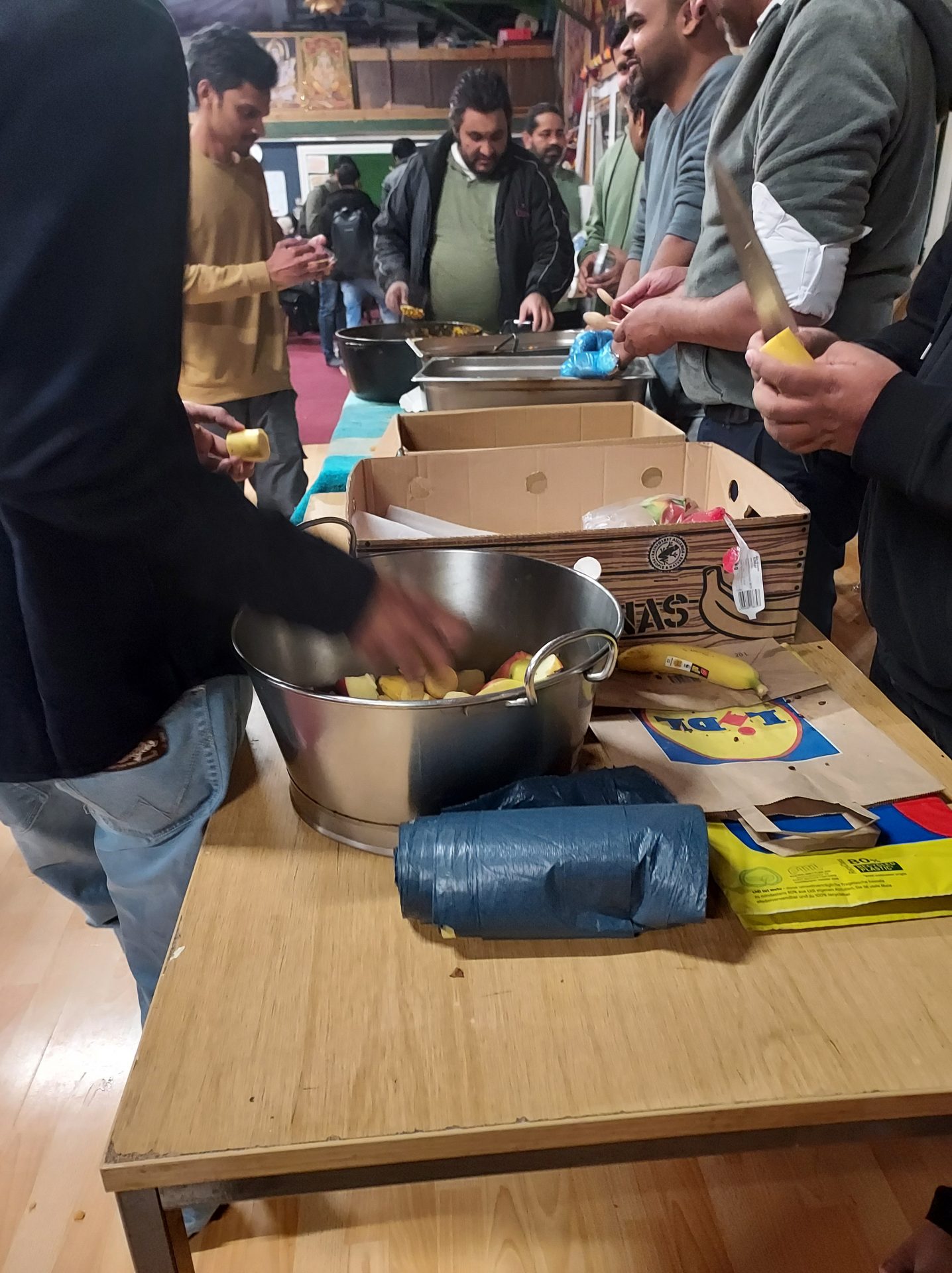 Inzwischen tragen einige Männer große Töpfe mit duftenden Speisen in den Tempel. Nach einer kurzen Segnung durch Mantrengesänge verwandeln sich gelber Gewürzreis, Kürbiscurry und süße Grießbällchen in Prasad – heilige Gaben, die Glück bringen sollen und anschließend an die Besucher verteilt werden.